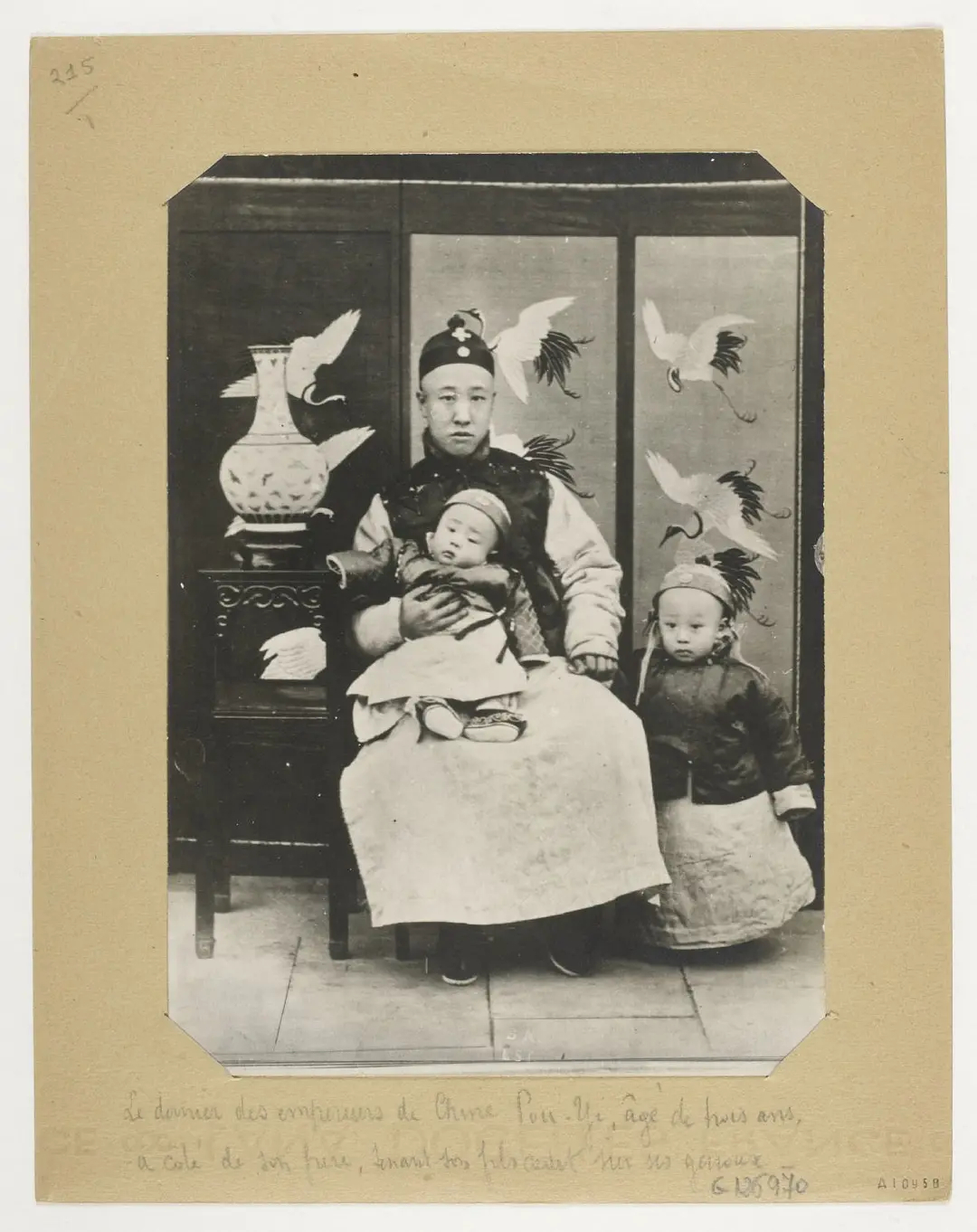 👇 宣统皇帝溥仪(最右)和弟弟溥杰和其父(醇亲王载沣)