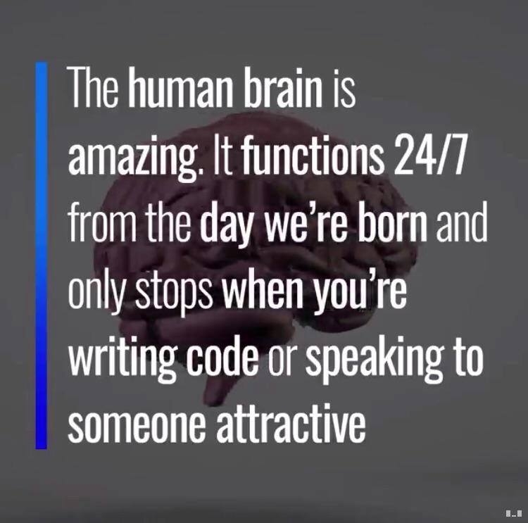 👆 大脑真的很神奇。它从我们出生开始就每天24小时不停的运转,只在写代码或者和喜欢的人说话的时候会停止工作。