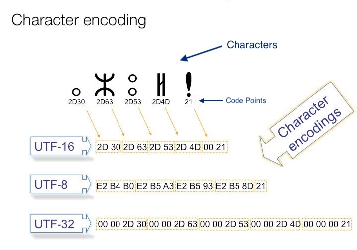 所以,出现了另一种实现 Unicode 字符集的系统——UTF-8。它采用变长的编码,用一个字节存储 code point 0-127,对 128 以上的使用 2字节、3字节,最多到 6 字节。